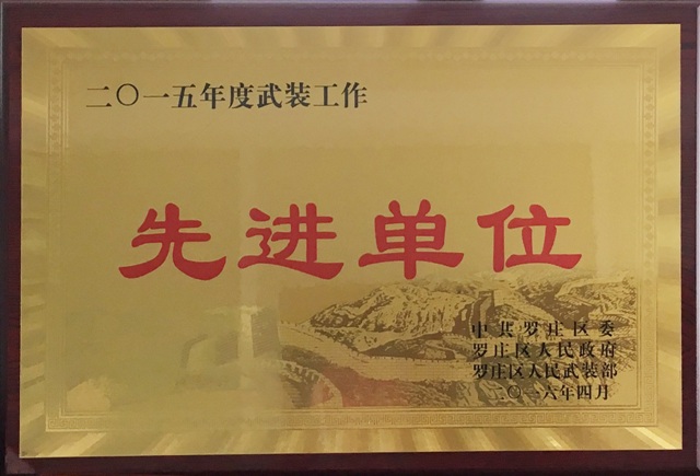 4月19日,罗庄区武装工作会议召开。我公司武装部在罗庄区武装工作中表现突出,被授予 “2015年度武装工作先进单位”、“先进民兵连”荣誉称号。陈正浩同志被授予“先进专武干部”荣誉称号。