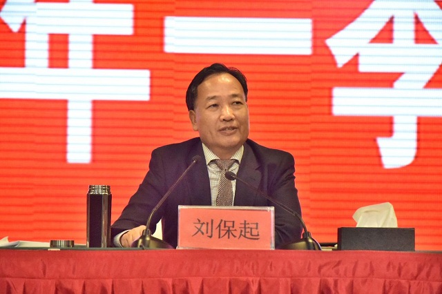 上图为董事长刘保起布置后三季度工作任务时的情景