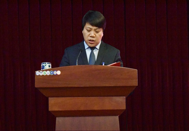 上图为股份集团公司副总经理、销售公司总经理钱朝龙作一季度工作汇报时的情景