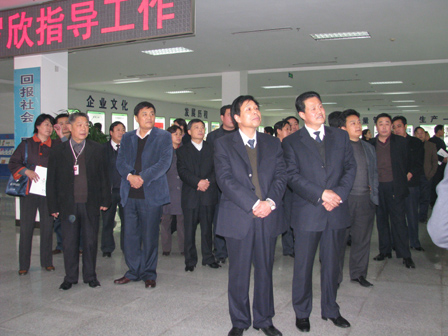 2008年12月3日,山东省总工会民主管理部部长侯国华(前排左一)、临沂市委副秘书长、机要局局长温希森(前排左二)、临沂市总工会副主席张贤德(前排左三)一行120余人莅临罗欣指导工作。对公司工会建设、职工之家、厂务公开等公司工会建设情况做了详细了解,听取了有关罗欣工会工作的汇报,对公司工会建设工作给予了充分肯定。