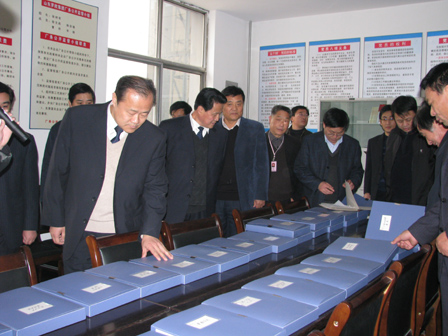 上图为临沂市委副秘书长、机要局局长温希森(前排右一)、临沂市总工会副主席张贤德(第二排左二)、罗庄区委常委、副区长魏九成(前排左一)等领导参观公司展厅时的情景